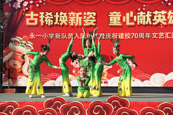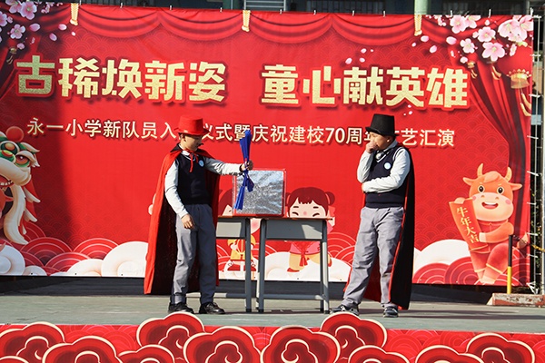 为庆祝该学校建校七十华诞,激励全校师生不忘初心,牢记使命,坚定信心,共建共进,早日把永一小学建成“小而美,小而精,小而优”的现代化学校。2020年12月31日下午,坦洲镇永一小学举行“古稀焕新姿,童心献英雄” 新队员入队仪式暨庆祝建校70周年文艺汇演。