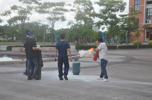 本次大会邀请中山市坦洲镇消防大队黄子豪警官主持召开。在大会上,黄警官通过大量典型火灾案例,借助实物和宣传画,结合学校工作、生活中的实际情况,生动详细地为大家讲述了学校防灾须知、消防器具使用以及火场逃生技巧。一幅幅因火灾造成的悲惨画面,一个个触目惊心的数字,一行行温馨的提醒文字,让在场的教职工切身感受到大火的无情和生命的脆弱。黄警官一再警示大家消防安全无小事,要求大家从工作生活中的小事做起,居安思危,预防为主。黄警官还为全体教职工实操演练煤气瓶着火和汽油桶着火两种情况的消防示范,会后大家在黄警官的指导下踊跃参与实操演练。
