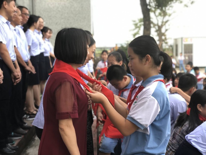此次活动本着“简朴、热烈、务实、高效”的原则,力求变单一的庆祝活动为主题庆祝活动,形式新颖,活动内容丰富。此次庆祝活动共五个环节:首先由升旗仪式开始。接着,四(1)班全体学生为老师们诗朗诵《园丁颂歌》,华丽优美的句子、抑扬顿挫的语调、激情飞扬的情感深切地表达了全体学生对老师的敬佩和谢意。随后,全校学生表演手语操《听我说谢谢你》,全校老师上台,少先队员为全体老师授红领巾,他们用最质朴的祝福形式向老师们表达了满腔的感恩之情。最后由余校长讲话,讲话中没有高高在上的苍白说教,没有浮于表面的理论空谈,而是举出自己生活中的实际例子,让学生们懂得感恩教师情。