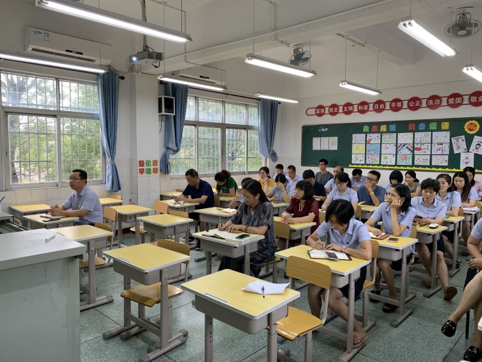 接着,李华湘主任也对学校开展传统文化教育做了指引,点明了方向。李主任从于漪老师的“人是要有点气象的”谈起,强调了教师在传承中华优秀传统文化上的重要使命。中华优秀传统文化博大精深,囊括众多,一家一派,一篇一章,一诗一画,往往都能给人以巨大的艺术享受或深刻启迪。李主任对此做了简单介绍,并进一步说明开展传统文化教育的作用与意义。根据教育部对于强化中华优秀传统文化教育的要求以及中山市对于中小学开展中华优秀传统文化教育工作的要求,李主任提出了本校开展传统文化教育的要求,从经典诵读入手,开展吟诵教学,将传统文化教育渗透于日常教学当中。同时,李主任更是呼吁全体教师都投入到吟诵当中来,从古韵雅调中感受传统文化的独特魅力。