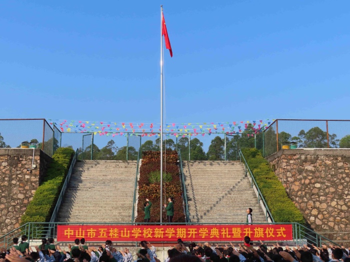 升旗仪式后,举行开学典礼。五桂山学校党支部书记陈玉玲在典礼上送给全体学生三个新年“礼物”。健康的身体:希望同学们在新学期积极参加各项体育活动,保证1天能够有1个小时的活动时间,锻炼好健康的体魄;阳光的心态:希望同学们乐观向上,能够正确面对挫折与困难,遇到问题,多与老师与家长沟通;良好的习惯:希望同学们养成良好的学习习惯和行为习惯,培养高雅的兴趣,为美好的前程打好坚实基础。
