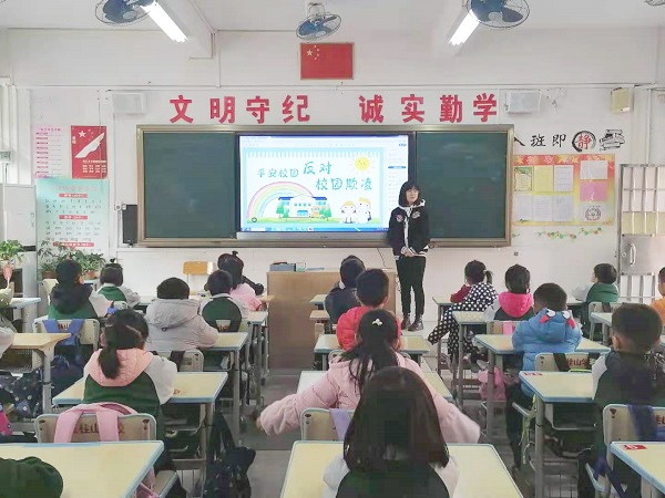 在主题班会上,各班班主任展示了校园欺凌给受害者带来的伤害及严重后果,从“中小学生的哪些行为是属于校园欺凌”、“校园欺凌会造成哪些危害”等方面对有关校园欺凌的常识进行讲解,使学生了解了校园暴力的危害。同时,引导学生识别校园欺凌,遇到校园暴力时,如何保护自己,要敢于向校园欺凌说“不”,学会正确处理同学之间的关系。