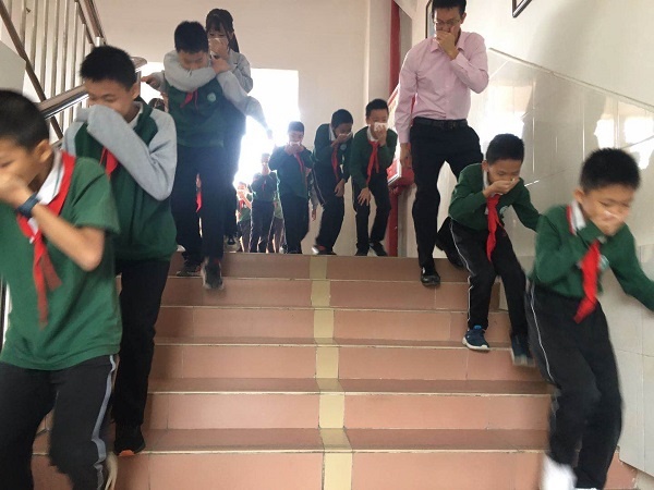 10日上午,第一节课下课,火灾警报声响起。学生们立刻拿出平时备用的小毛巾,用矿泉水浇湿并捂住口鼻,在老师的带领下弯腰有序地撤离火场,跑向远离火场的指定安全地点。小学部只用了4分多钟,一千多名学生安全有序地疏散到指定地点。中学部最快的班级在不到46秒钟就集中完毕,共耗时1分51秒。逃生时没有发生拥挤、踩踏事故。
