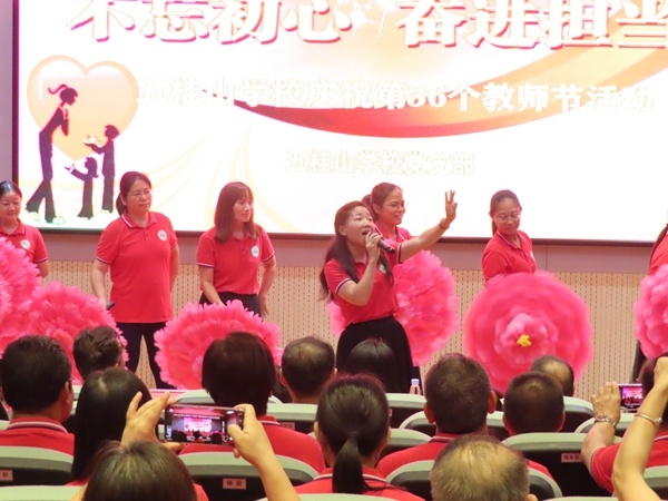 最后,李佳利致辞中向辛勤工作在教育战线上的广大教师、教育工作者及离退休教师们致以节日的问候!并对全体教师及五桂学子呈现出的昂扬风貌以及学校目前所取得的进步表示赞许。家庭是社会的细胞,她希望五桂山教育人能够继续秉持对党和人民负责的态度,对五桂山发展负责的态度,做好教育,做真教育。