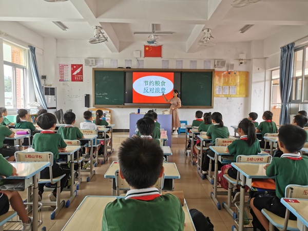 为培养学生良好的饮食习惯和“节约光荣,浪费可耻”的意识,9月7日,五桂山学校结合世界粮食日和全国爱粮节粮宣传周的活动,开展了题为“节约粮食、反对浪费”主题班会。