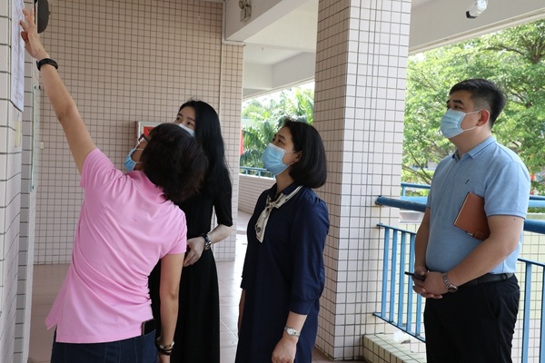 上级行政部门也行动起来。复学通知发布后,4月15日开始,区教指中心、社区卫生服务中心、区疾控中心等部门和学校健康卫生副校长多次来检查指导学校的复学工作,让学校的准备工作更有针对性、更趋于完善。4月21日,中山市疫情督查督办组及市教育工委督查组也来到学校检查指导工作,给学校提了许多宝贵的建议。