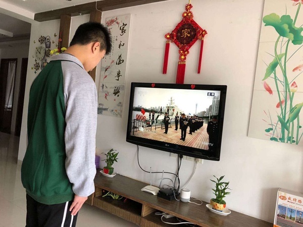 4月4日上午10时,防空警报鸣响。室外,汽车、火车、舰船鸣笛,山河呜咽,举国齐悲。身处各地的五桂山学校的师生们怀着沉痛的心情,在电视机前默哀三分钟,深刻缅怀英雄和逝去的同胞,庄重感,肃穆感扑面而来。