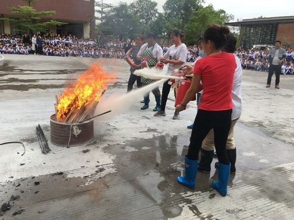 学校还邀请了专业的消防工作人员对全校师生进行了一系列的消防知识教学,包括正确使用灭火器的步骤,逃生知识等。师生们认真观看学习,在消防工作人员的指导下,新进校的老师、各班的班长亲身上场实践,大家都能按步骤正确使用灭火器,扑灭了火源,真是受益良多。