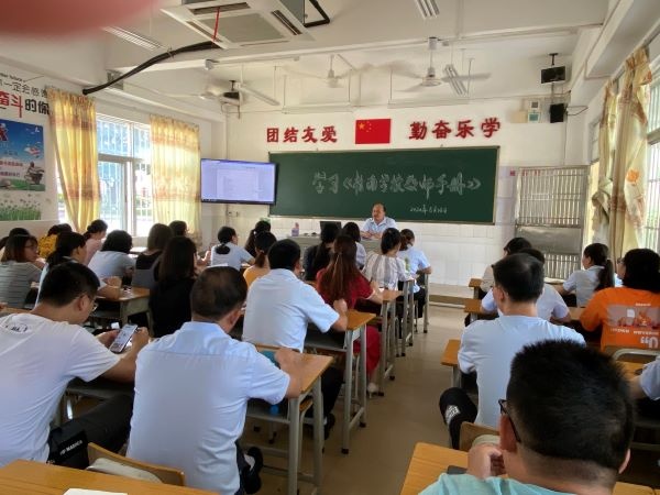 只争朝夕,不负韶华,2020年秋季开学工作正紧锣密鼓地进行。2020年8月28日上午,桂南学校中学部组织全体教师召开《桂南学校教师手册》培训会。会议由德育处张春霞主任主持,全体中学部教师参加了学习。经过一个暑假的休整,全体中学部教职工精神饱满。