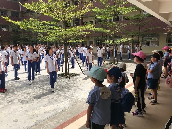 在余校长和杨主任的带领下,桂南幼儿园的小朋友们参观了美丽的校园,走进一年级教室,欣赏了一年级老师精彩的课堂,观看了哥哥姐姐们整齐的课间操,真实体验了小学生的日常生活。杨主任还带小朋友们参观了学校的美术工作室,欣赏了哥哥姐姐们的各种各样的版画、刺绣、泥塑、毛笔字等作品,这些作品激发了孩子们对小学学习的向往。