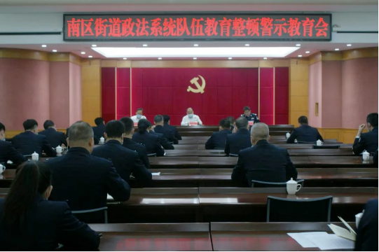 为扎实开展政法队伍教育整顿工作,打造一支党和人民信得过、靠得住、能放心的政法铁军,3月25日,南区街道召开政法队伍教育整顿警示教育大会暨党纪党规培训会,南区街道党工委副书记朱勇主持会议,党工委委员、公安分局局长邓仲汉,党工委委员、纪委书记廖华添,南区街道政法编制人员,公安分局全体民警参会。