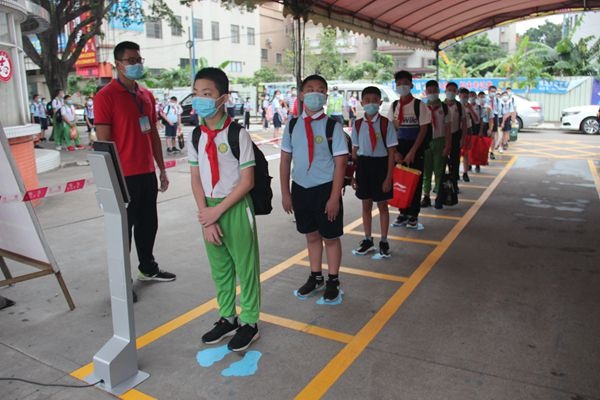 白雨跳珠飞花,绿枝水光潋滟。九小翩翩学子,少年风华正茂。2020年5月18日,中山市小榄镇九洲基小学四到六年级在风雨中迎来了开学日,小榄镇党委副书记曾顺秋先生、小榄镇教体局副主任曾文春先生和小榄镇教体局副主任李平生先生莅临指导监督。