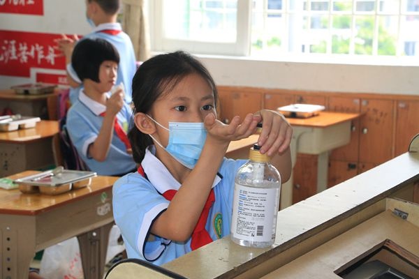 日幕时分,和风吹送,愉快充实的开学第一天结束了。校门外家长们有序地等待孩子放学;校园内,同学们分年级,站好队,在班主任老师带领下,做好错峰放学的准备。孩子们放学后,各班正副班主任在教室进行全面消毒。让学生们不仅要把一天的快乐带回家,更要把健康和安全带回家。