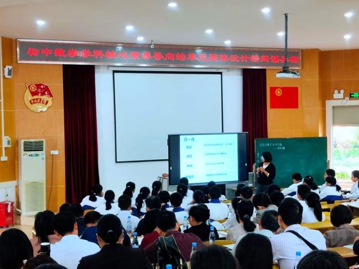 2020年11月25日,为促进教师的专业化发展,加强教师对数学核心素养的研究,完善教师的课堂教学能力,根据小榄镇有关教师继续教育学科研修课程安排,小榄镇初中数学教研中心组在永宁中学开展“初中数学学科核心素养导向的单元整体设计的同课异构”研讨活动。本次活动由永宁中学数学科组长刘雄文老师主持,小榄镇全体初中数学老师参加了研讨活动。研讨活动分为“课堂展示+说课+评课+总结”四步曲。