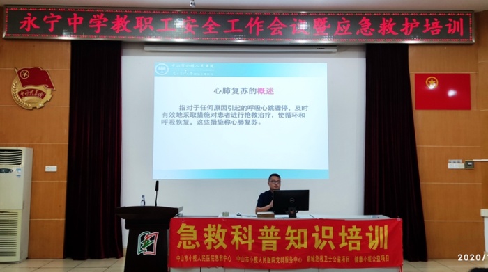 下午教师会,学校专门召开教职工安全工作会议暨应急救护培训现场活动。陈清茂校长主持会议,提出了学校近期安全工作重点、努力方向及常态防疫要求。本次安全教育和培训专门请来了小榄人民医院急诊科赖智权主任为教职工进行急救知识培训,小榄人民医院周日院医生进行“心肺复苏”现场示范,老师们也争先恐后上场进行心肺复苏实操训练。本次培训针对性强、实用性高,教职工们受益匪浅。
