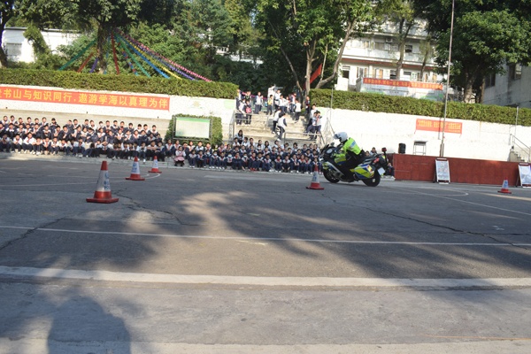 活动最后,进行的是“铁骑展示和互动”环节,交警铁骑队员们为同学们表演了铁骑骑行、绕桩等风采展示,铁骑队英姿飒爽,一展风采,让现场的同学们拍手叫好、掌声不断。表演完毕后,铁骑队员们与同学们进行了亲切的互动,不少同学在铁骑队员的帮助下,穿戴上铁骑日常装备,体验铁骑的工作,感受铁骑的使命,还对铁骑队员提出了许许多多的心中的小疑问,铁骑队员都进行了耐心回答并与同学们合影留念。