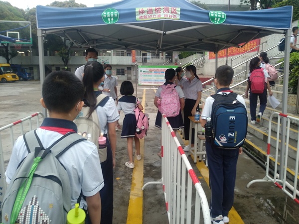 放学离校时,采取了错峰错时段放学制度,放学时间提前告知家长,学生保持排队间距,有序放学。乘坐校车的学生排好队伍、保持1米间距,有序等待跟车老师测量体温、洗手后方可上车入座。每一个环节都做到细致谨慎,务必将病毒隔离在校门之外。