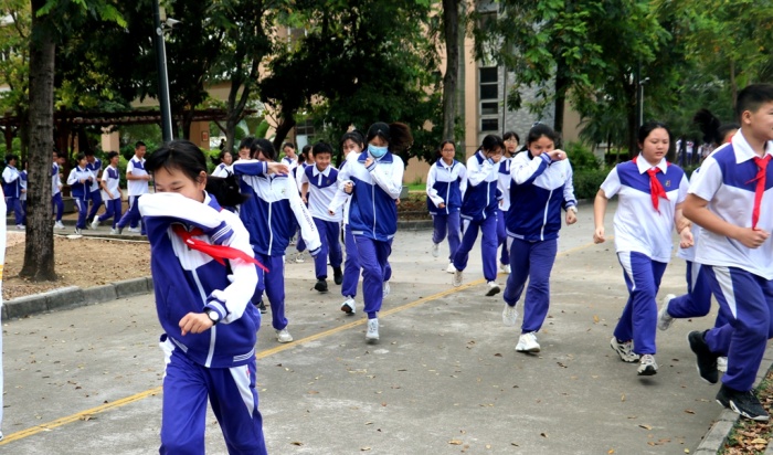 2021年3月29日,永宁中学举行了消防安全应急疏散演练活动。上午8点40时,警报声响起,学校应急疏散演练总指挥下达紧急疏散指令,关键岗位疏导指挥员立即就位,各班主任老师迅速到教室协助上课老师一起组织学生疏散,其他老师也在第一时间赶到所在楼层拐角处配合引导学生。学生弯着腰,用衣袖捂住口鼻,沿预定疏散路线有序撤离到学校运动场,耗时2分47秒,演练达到预期效果。本次活动强化了师生安全防范意识,提升了应急自救能力和素养。