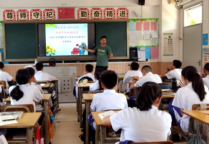 3月30日下午,永宁中学组织各班召开“关爱生命,预防欺凌,共建平安和谐校园”主题班会,全面加强防火、防溺水、防交通事故、防食物中毒、防网络诈骗、防欺凌、防暴力伤害、防毒品、防传染病等“九防”教育,特别针对清明假期安全工作做了重点布置和提醒,让安全知识入脑入心,不断提升学生们安全素养。