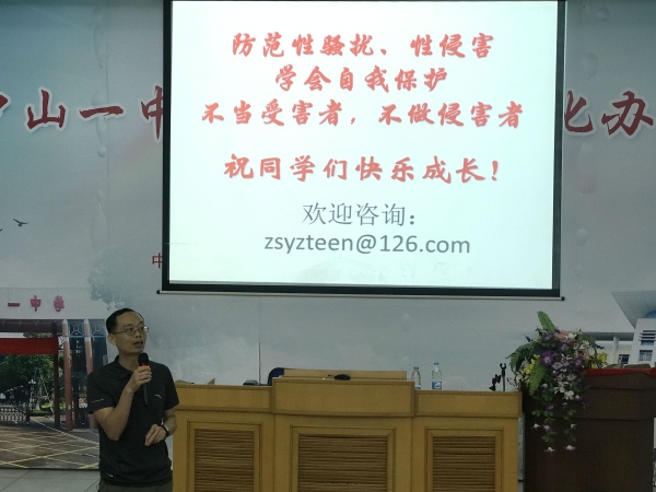 6月2日下午,中山一中西区中学在阶梯室举办了“拥抱青春,防范性侵——初二级青春期性教育”讲座,本次活动由莫秀红副校长主持,中山一中青春期性教育课题组赖浩老师主讲,初二年级全体男生、全体班主任、生物科组参加本次活动。