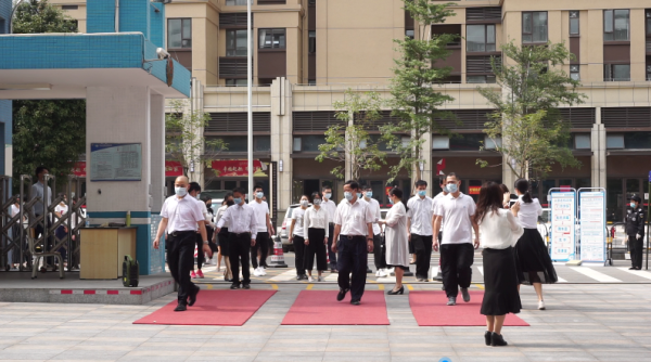 为扎实做好学生复学前的疫情防控准备,提高学校防范和应急处置能力,保证广大师生生命安全和身体健康,确保开学后学校各项工作有序开展,在广东省教育厅公布返校复学时间后,中山一中西区中学于4月20日上午开展了第二次复学疫情防控模拟演练。西区文体教育局陈水清局长、教研员梁亮亮、黄丽敏女士、中山市西区社区健康服务中心、西区中学健康副校长曾广权副主任、驻点医务人员吴金亮医师、中山一中西区中学全体行政、全体初三教师、初二班主任近50人参与了本次演练。