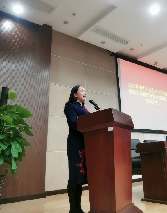3月5日上午,中山市教育和体育局举行2020年中山市民办中小学规范达标与品牌提升评估星级认定授牌仪式,为中山市部分优质民办学校授牌。中山市教育和体育局副局长黎国喜、中山市教育和体育局副局长陈威为获评星级学校颁发了牌匾,各镇街教育主管部门负责人及民办学校校长参加了授牌仪式。