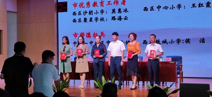 九月的秋风送来阵阵清爽,九月的阳光捧上热情的祝福,第36个教师佳节如约而至,到处洋溢着温馨而感人的气氛。9月10日上午,路海云校长带领30多名教师代表参加西区2020年教育工作会议暨教师节庆祝大会。在过去的一年里,聚星学校硕果累累,涌现了一批批优秀教师。其中:路海云校长荣获中山市优秀教育工作者以及西区优秀教育工作者光荣称号,林月飞老师被评为西区教坛新秀,沈思明老师被评为西区教研工作先进个人,丁秀梅和何培根两位老师被评为西区优秀班主任,程达平、魏英、沈思明、童雪玉、麦彩燕、林容戎、曹玉婷、廖南斯、严泳珊等老师被评为西区优秀教师。