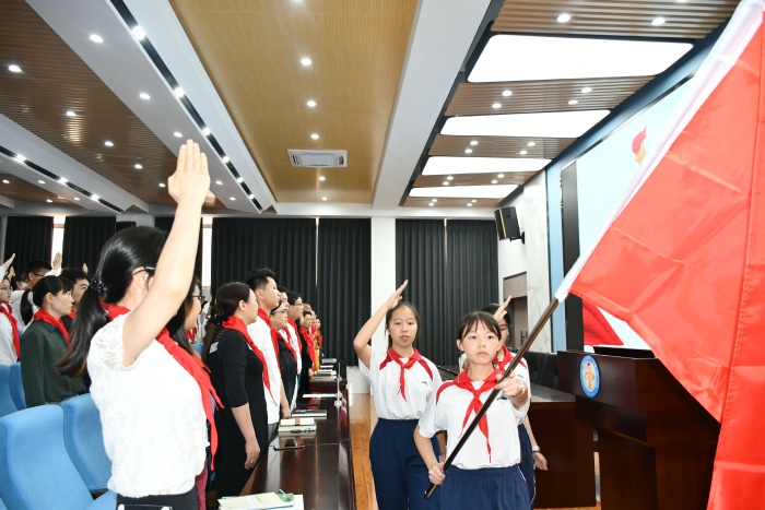 最后,学校少工委主任范振海寄语,他祝贺本次会议顺利召开,提出要聚焦培养共产主义接班人,聚焦传承红色基因,聚焦政治启蒙和价值观塑造,不断推进少先队组织创新和工作创新,团结、教育、引领广大少年儿童努力成长为能够担当民族复兴大任的时代新人!
