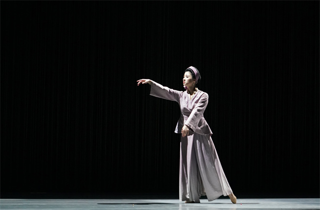 这其中还有导演本身的女性视角,比如说,杜甫的妻子杨氏史书上几乎没有什么记载,但是在这个舞剧中,导演给了她相当的空间,从新婚别离,到中年重聚,让她去展示普通人的情感,‘杜妻’这个角色一辈子都在等待,在杜甫出去求官到弃官回乡的过程中,他只回来过一次,那一次是儿子死了。所以在舞段中,杜妻流着泪哭打着质问他,你到底在干什么?你也可以从她的身上感受到杜甫的心中有大家没小家。”