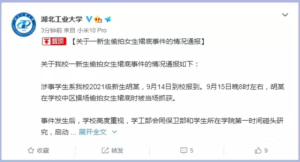 这一行为,其实就是在侵犯女同学,不仅仅是隐私,更不可忽视的是,对女同学造成了心理上的伤害。另一方面,他也是对自己的“侮辱”――十几年求学,考上湖北工业大学,这也足以说明这位同学在学习方面是比较优秀的。但是他自己的做法不仅仅毁掉了自己的前程,更是对自己的否定――多年受的教育白白浪费!