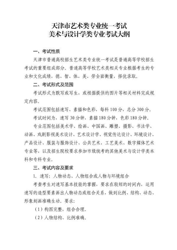 23日,市考试院官网发布天津市艺术类专业统一考试大纲,共包含6个专业类别:美术与设计学类专业、戏剧与影视学类专业、舞蹈学类专业(不含体育舞蹈)、体育舞蹈专业(不含啦啦操)、播音与主持艺术专业、音乐类专业,其中音乐类专业市统考为今年新增。