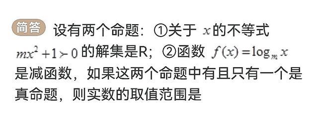对于这种“P和Q两个命题有且仅有一个为真,求参数取值范围”的题目,星空体育通常先将P、Q两个命题都当成真命题,分别求出此时参数的取值范围,当命题为假时,参数取值范围就是前面求出范围的补集,然后再分类讨论得到参数最终的取值范围。