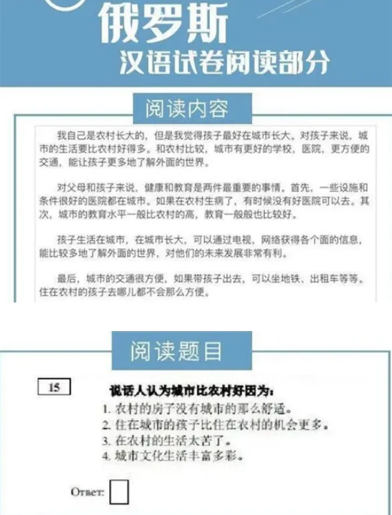 大多数情况都是依靠自己丰富的想象力,来回答下面的问题。能得多少分,完全取决于幸运指数。当俄罗斯学生看到汉语试卷的阅读理解时,内心是崩溃的。