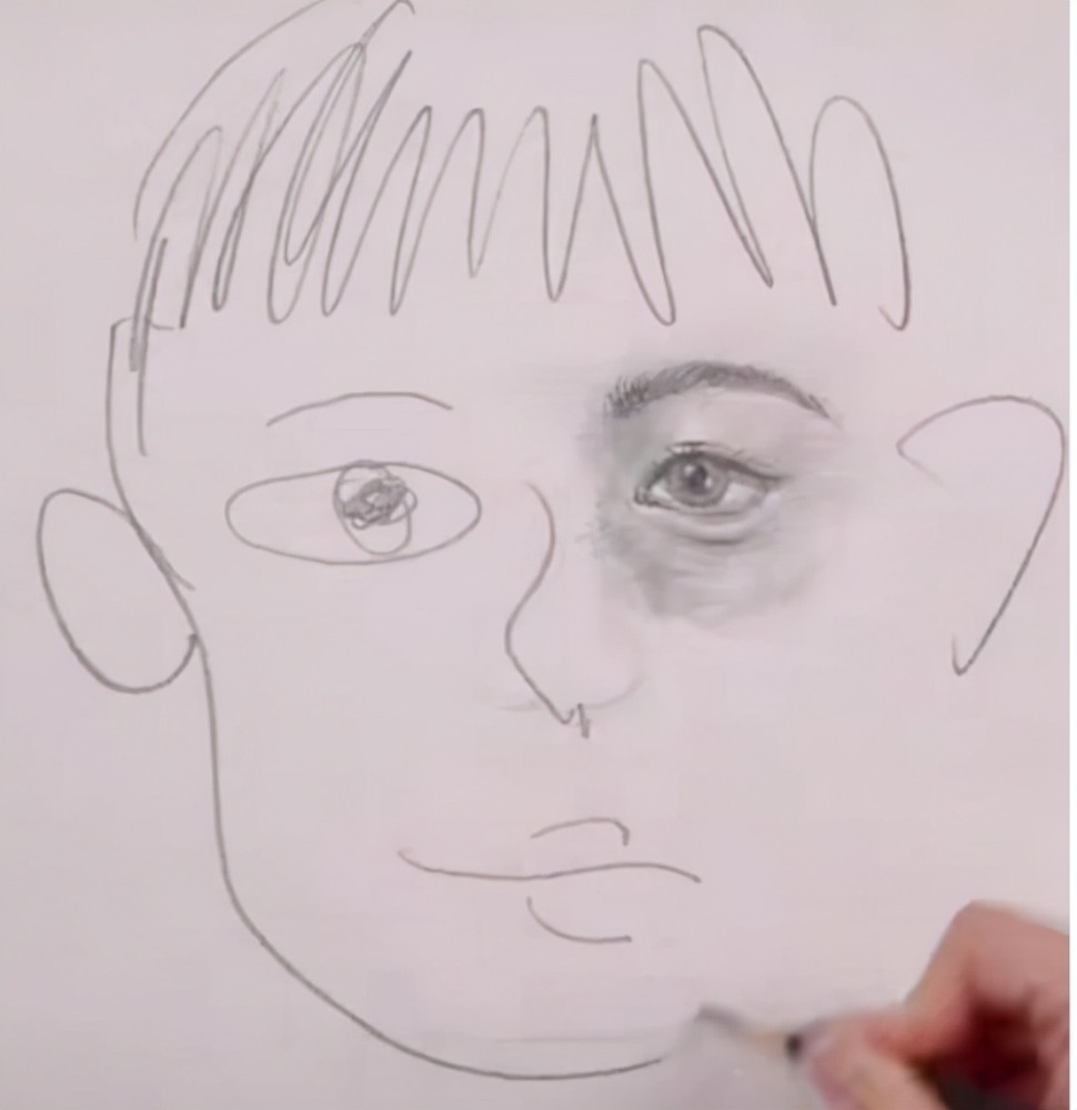 第二位考生在正式月考中因发呆了太久,导致时间严重不够。当她怀揣着着急的心情,终于将个眼睛画完后,离考试结束却只有2分钟。在最后2分钟里,为了保证作品能画完,她匆匆描了两笔鼻子与嘴巴。