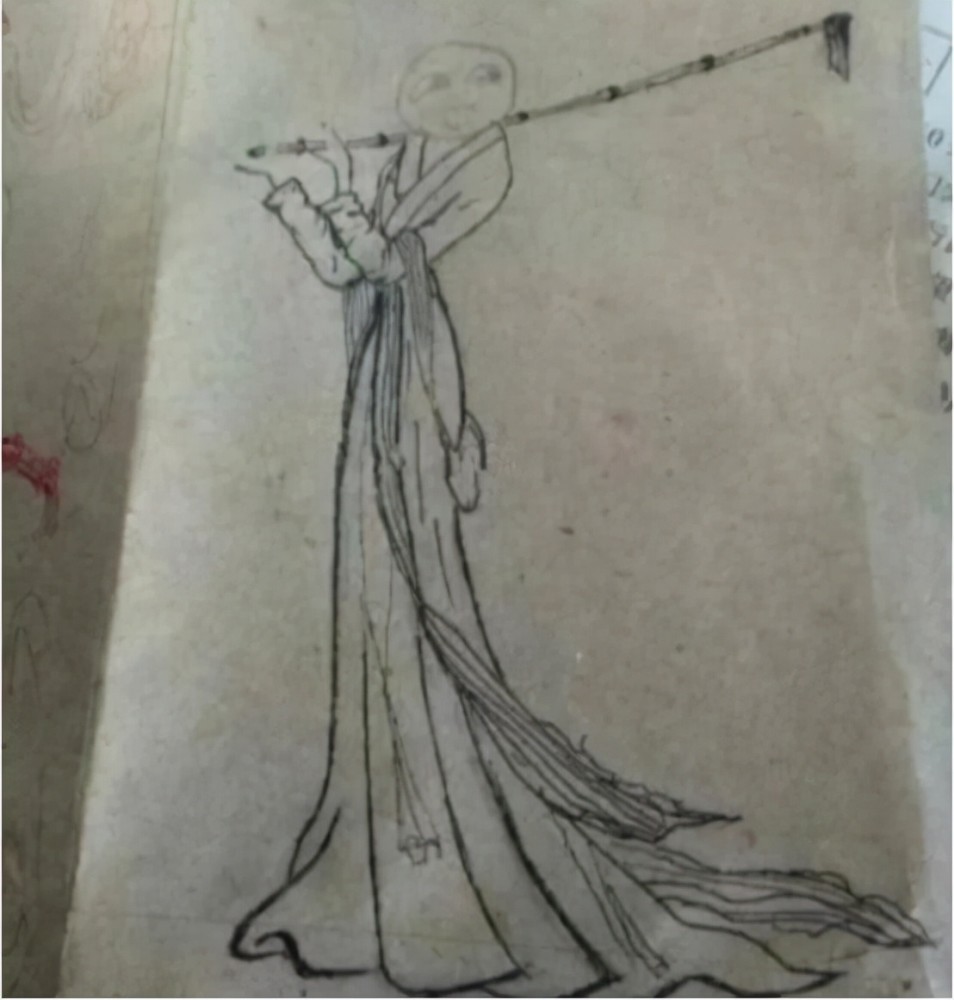 这位美术生在随堂小考时想要画一个扛着锄头、悠闲自得、身段优美的农家女子。很明显,这位学生最开始描的是,这位女子的身段与衣服。最用心画的衣服与身体显得格外地优美动人。