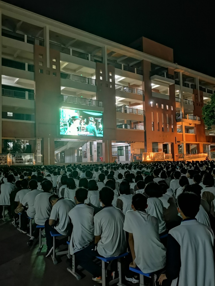 为加强爱国主义教育,激发学生爱国主义情感,丰富校园文化生活,11月19日晚上,吴剑文校长、黄金丽副校长带领全校1800多名师生,观看爱国主义电影《八佰》。