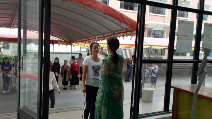 本次演练从学生入校晨检开始,对入校时发现有学生出现发热等突发情况进行了模拟。接下来,对学生在教室呕吐的突发情况进行了演练,针对呕吐后如何有序疏散学生,如何处理呕吐物等常见问题做了清晰的流程解答和实操演练。最后,在学生入宿舍这一场景,由宿舍管理人员展示了如何处理晚检时的异常情况。