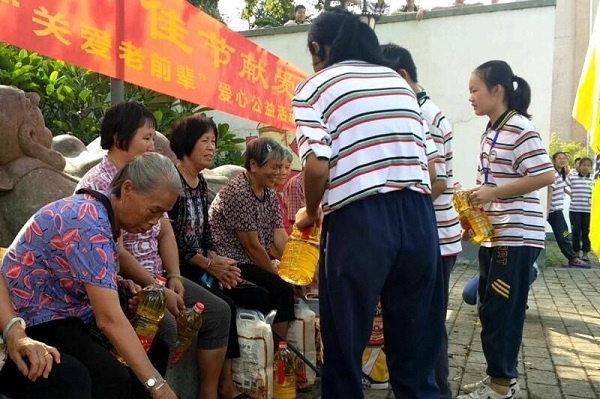 为了加强学生的思想品德教育,培养学生的社会责任感,继承和发扬中华民族尊老敬老的优良传统,2018年9月20日上午,坦洲华特雅学校组织了部分师生来到坦洲镇沾涌村,开展“中秋送温暖 佳节献爱心”的爱心公益活动。他们代表全校2600多位师生员工,为沾涌村的爷爷奶奶们送上中秋礼物,也给前辈们送上全校师生的关怀与祝福。