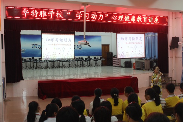 随着社会的发展,学生的心理健康教育越来越受重视。为推进学校心理健康教育,营造和谐校园环境,促进学生健康成长,进一步完善学校对学生心理健康教育的教育体制,进而促进学生身心和谐发展和素质的全面提高,坦洲华特雅学校于2018年6月4日组织八年级全体学生开展了一次主题为“与学习成为好朋友”的心理健康教育专题讲座。