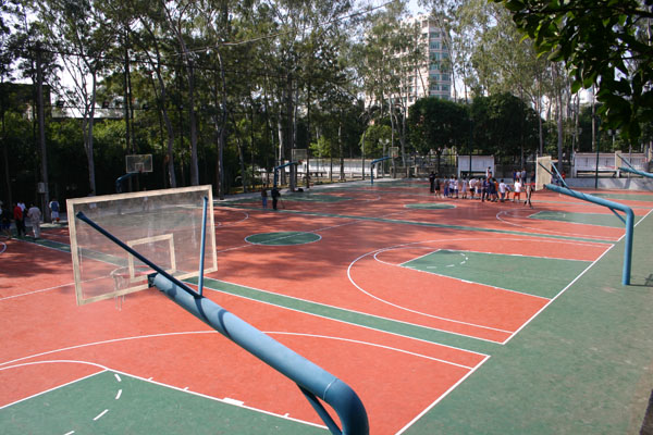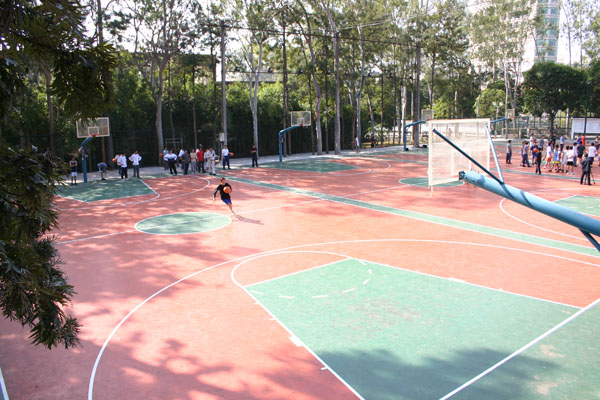 3、塑胶面层(透气式/混合式)篮球场:由EPDM橡胶粒子摊铺而成的塑胶面层,脚感软硬适度,摩擦力较强,对基础要求较低,造价较高,球反弹速度正常,摔倒时不易受伤, 适用于各种室内、室外篮球场。