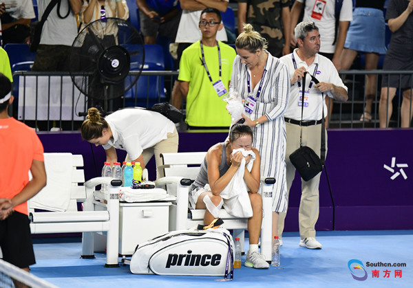 (南方网/讯 记者/朱江伟)9月18日晚,广州国际女子网球公开赛女单1/8决赛继续上演,中国金花彭帅对阵塞尔维亚小将斯托亚诺维奇。最终,彭帅以6-7(4)/6-2/0-6不敌斯托亚诺维奇。比赛末段,彭帅体力不支,但仍咬牙坚持完赛。