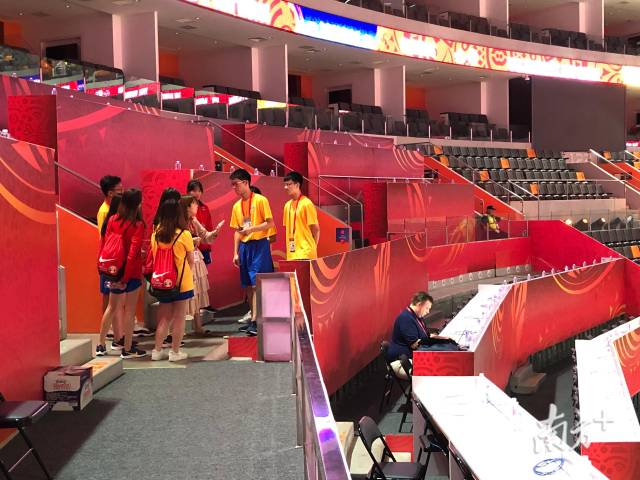 焦急踱步,紧盯着斜右侧的记分台,只见队友跑了过来,一把接过比赛数据,转身,倒计时开始——这是“小黄人”志愿者与时间的比赛。