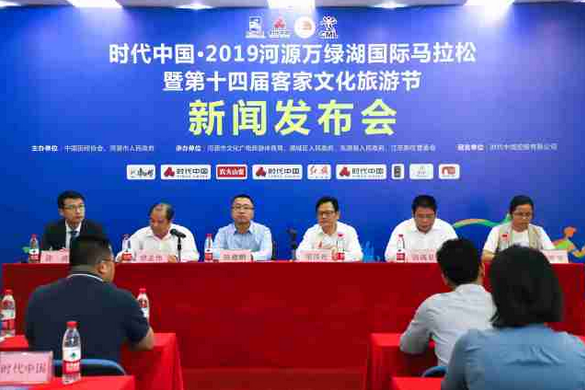 11月8日,时代中国·2019河源万绿湖国际马拉松暨第十四届客家文化旅游节在河源市体育馆召开新闻发布会,向外界通报了本届“河马”的筹备情况以及第十四届客家文化旅游节的相关信息。