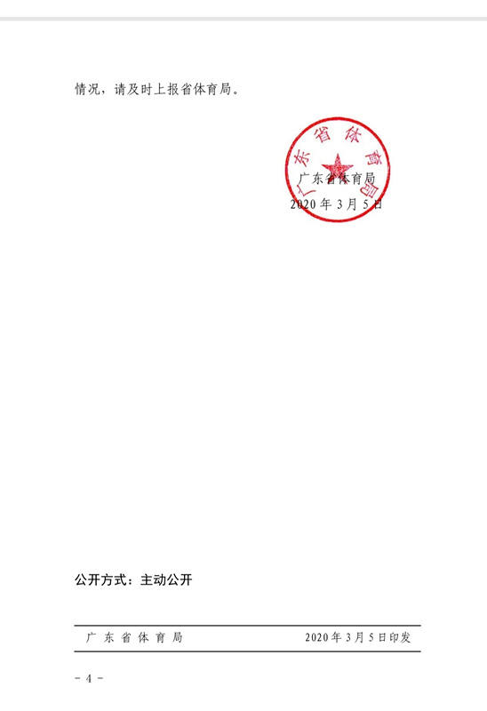 3月5日,广东省体育局发布《广东省体育局关于做好新型冠状病毒肺炎疫情期间公共体育场馆开放和体育赛事活动举行工作的通知》(以下简称“通知”),按照“坚持分区分级防控,落实属地管理”的要求,中风险地区和低风险地区根据属地防控工作安排,有序推进公共体育场馆开放和体育赛事活动举行的恢复工作。
