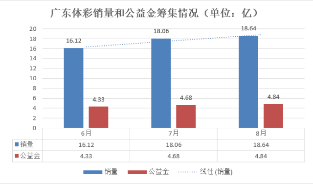 8月份,广东销售体育彩票18.64亿元,比上年同期增长5.5%;筹集公益金4.84亿元,比上年同期增长3.54%。2020年1-8月,广东累计销售体育彩票88.15亿元,筹集公益金24.04亿元。统筹推进疫情常态化防控和彩票销售工作开展,广东已连续三个月保持销售增长,总体销售形势健康平稳。