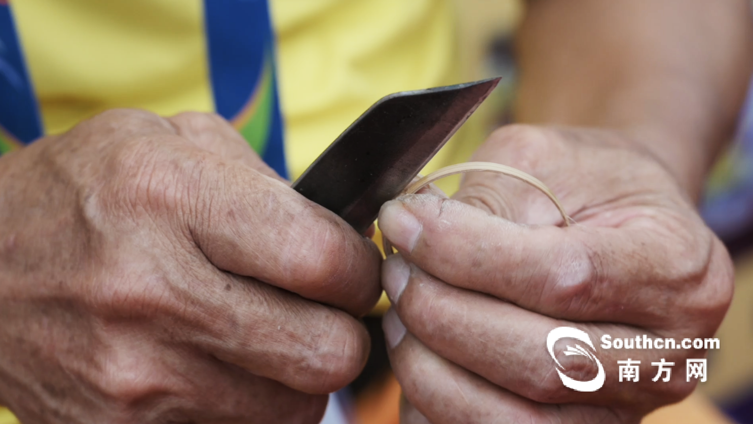 阳江风筝制作技艺包括扎制骨架、裱糊蒙面、彩绘美化和调试放飞四步,阮权熟练地完成了第一步。风筝制作世家出身的阮权八岁开始跟随祖父、父亲学习制作技艺,至今已有五十年的风筝制作和放飞经验,他更希望越来越多年轻人能继承这门古老的技艺。