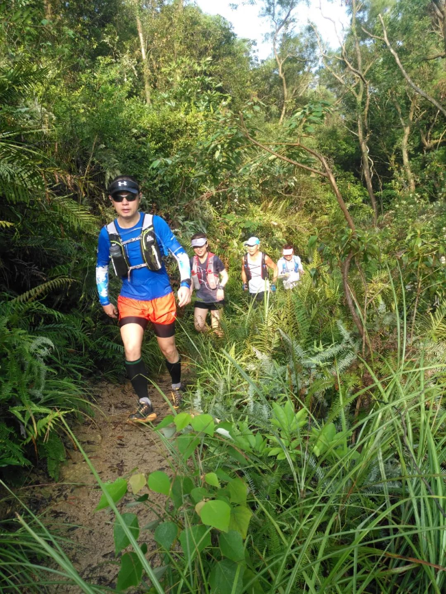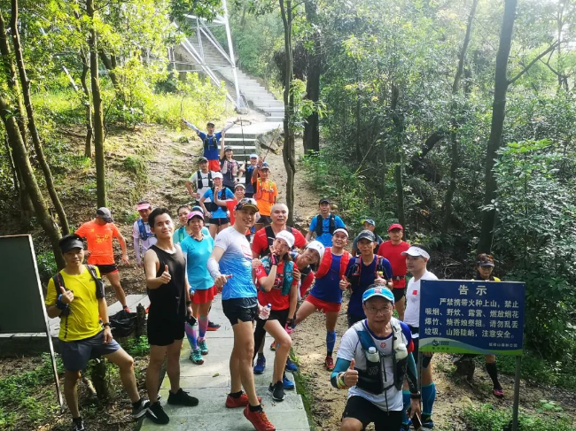 K1位开始,去到板樟山公园1340台阶位的这段中林道,略有起伏,飞人们仍然可以狂奔,因此基本捕捉不到他们的身影。但无论是飞人大部队还是跑得慢的收尾小分队的,都喜欢在白莲洞中林道爱心石这里留下合影。