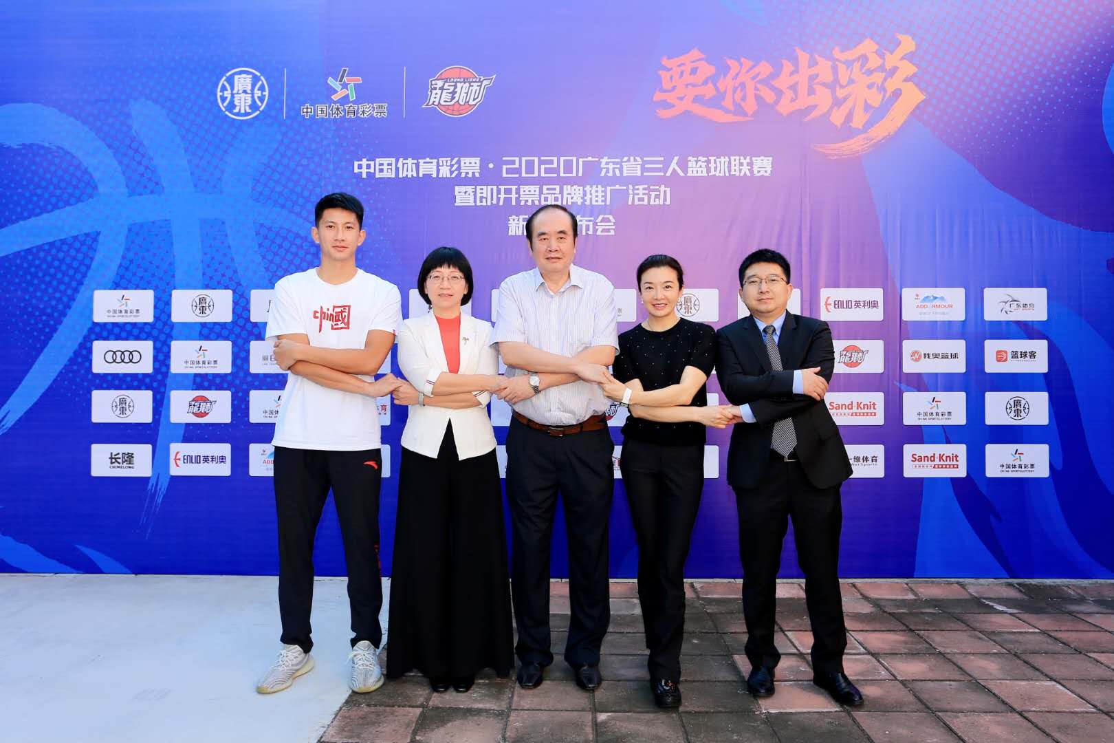 中国篮球协会副主席、广东省篮球协会会长刘克军,广东省体育彩票中心主任赵建新,一汽-大众奥迪销售事业部南部区区域主管市场与公关经理许良,龙狮篮球俱乐部股份有限公司商务运营总裁陈菁,2018年印尼雅加达亚运会三人篮球项目冠军队员、2019 年广东省三人篮球联赛男子组冠军队队员黄文威出席了新闻发布会。