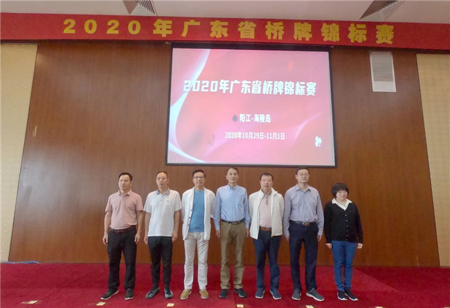 10月29日至11月1日,由广东省社会体育中心主办,阳江市海陵区文体局和广东省桥牌协会承办的2020年广东省桥牌锦标赛在阳江市海陵岛蓝波湾酒店举行。此次比赛分甲级团体赛和乙级团体赛,共有广州(红棉)、科大校友、广州明健等16支甲级队和韶关农信、广州缘和等20支乙级队共250多名运动员参加比赛。广东省社会体育中心副主任卢海燕、中国桥牌协会特邀副主席陈胜洪、广东省桥牌协会主席高文伟、阳江市海陵区文化体育局局长冯兆绘等领导和嘉宾出席了开幕仪式。