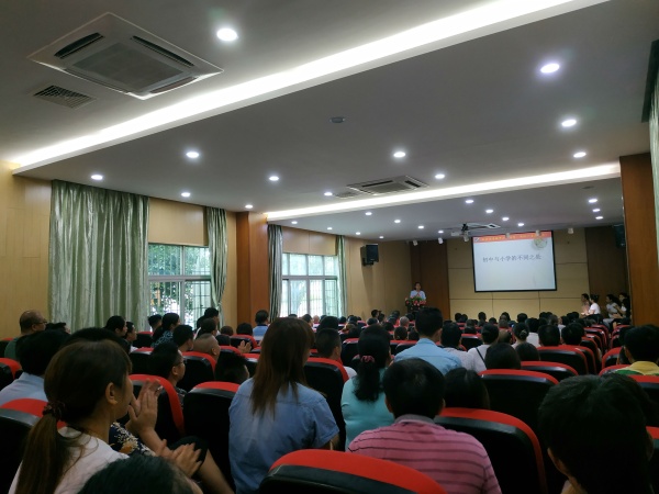 初一年级组长田田老师在会议上向各位家长传递了今年聚星学校中考捷报,预言本届初一新生三年后一定会大放异彩。田老师在会上将小学与初中各科进行对比,家长们在比较中发现初中学科难度远远超过小学,课堂上的学习是根本不能满足学生的需求,还需要大量的课外时间拓展学习。年级组有针对性的拟定了一系列的暑假阅读计划,为初中做好了充足准备,也给学生更多的适应时间。